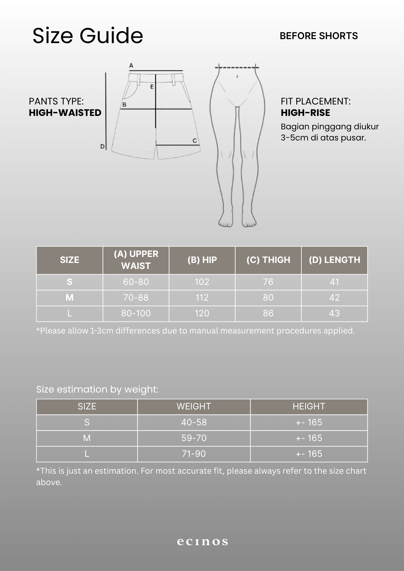 * Please allow 1-3cm differences due to manual measurement procedures applied and a little color variation for different display and lighting settings.