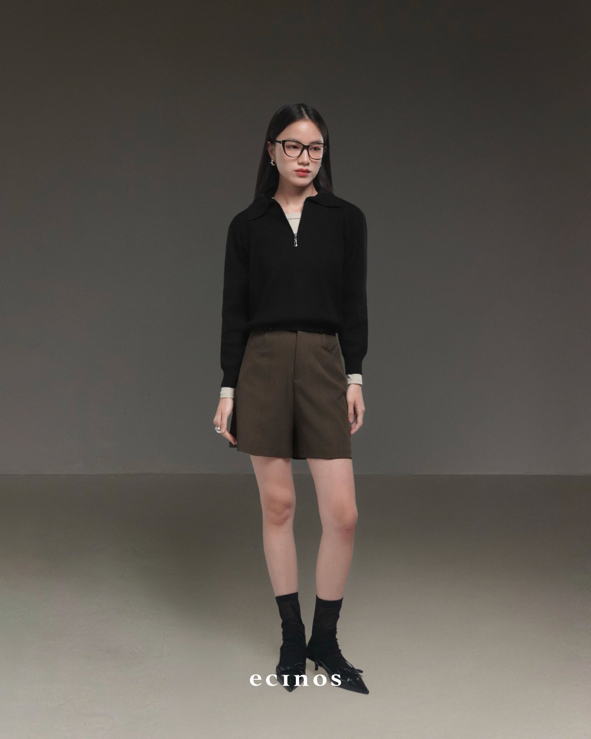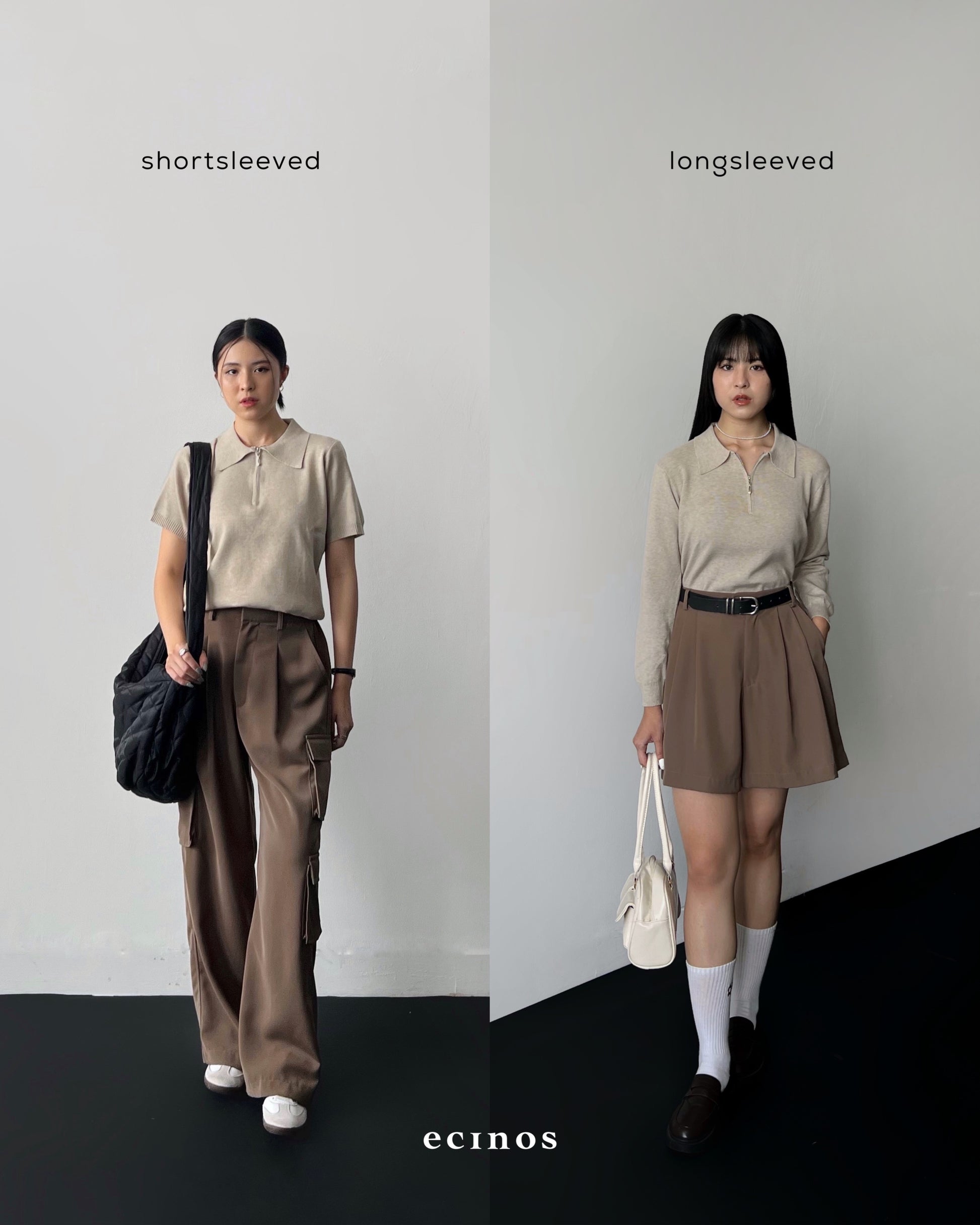 • Polo knit top with premium zip-up