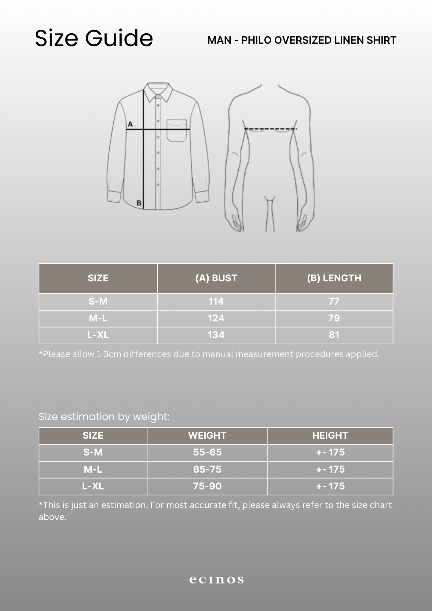 • Classic cut, oversized button-up shirt with signature ecinos buttons
