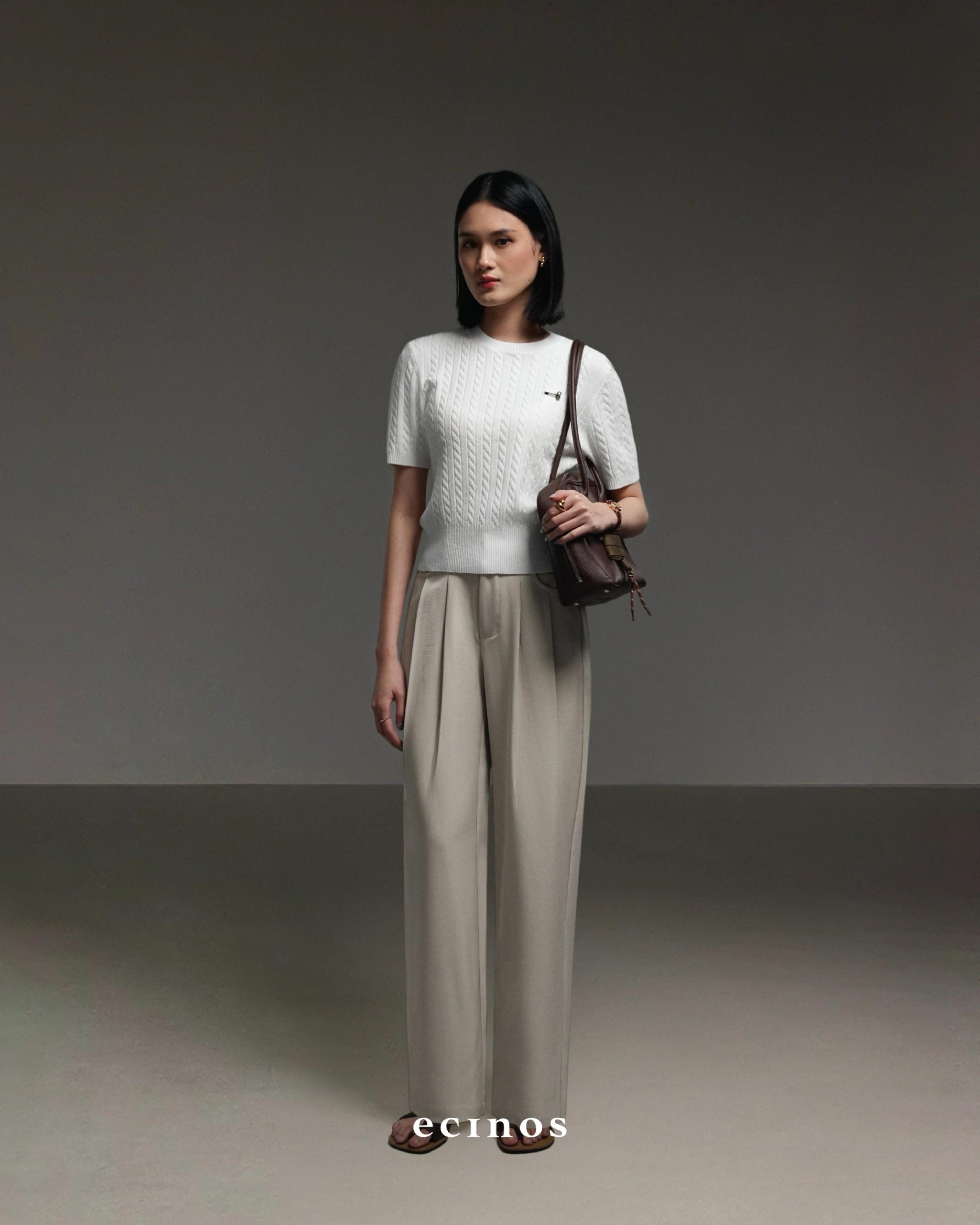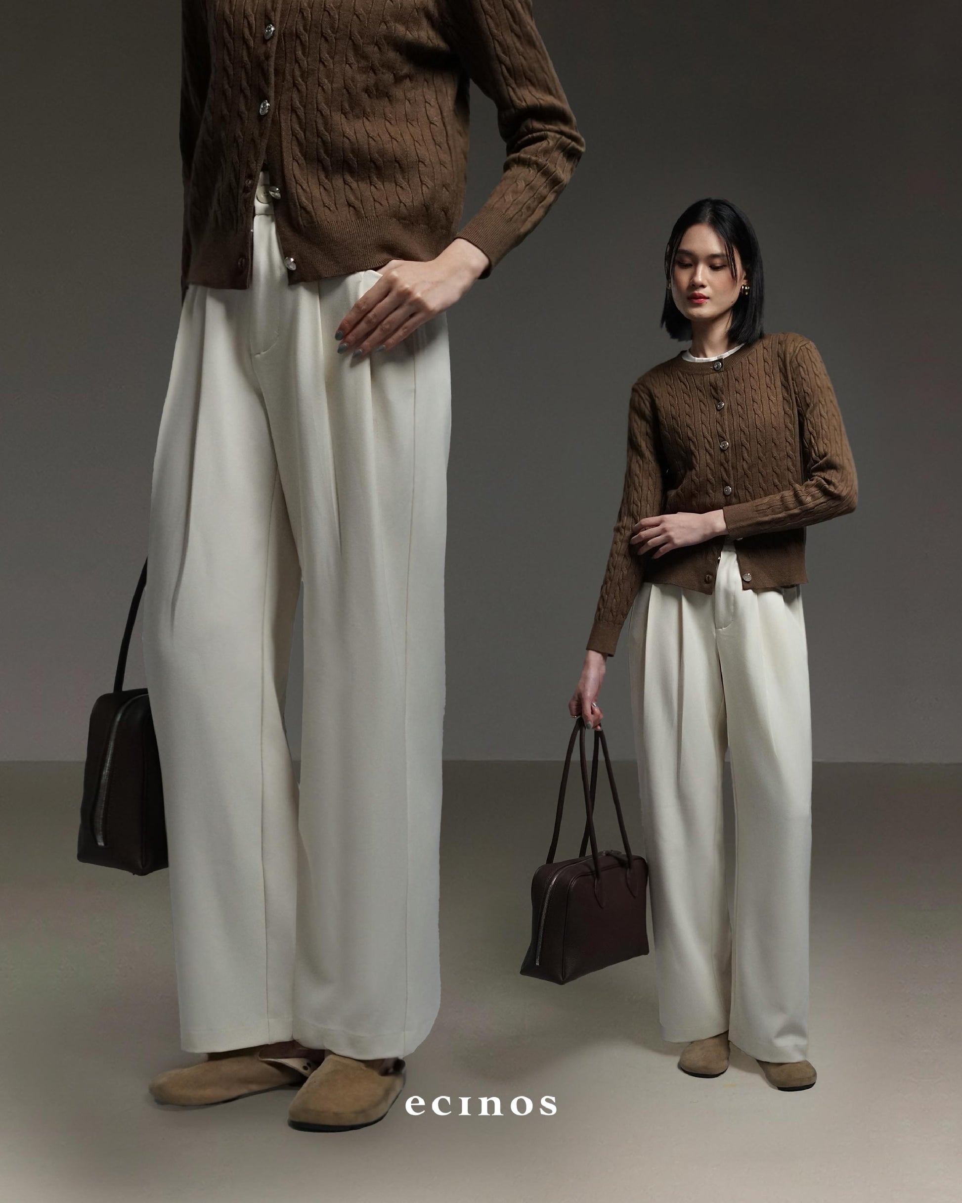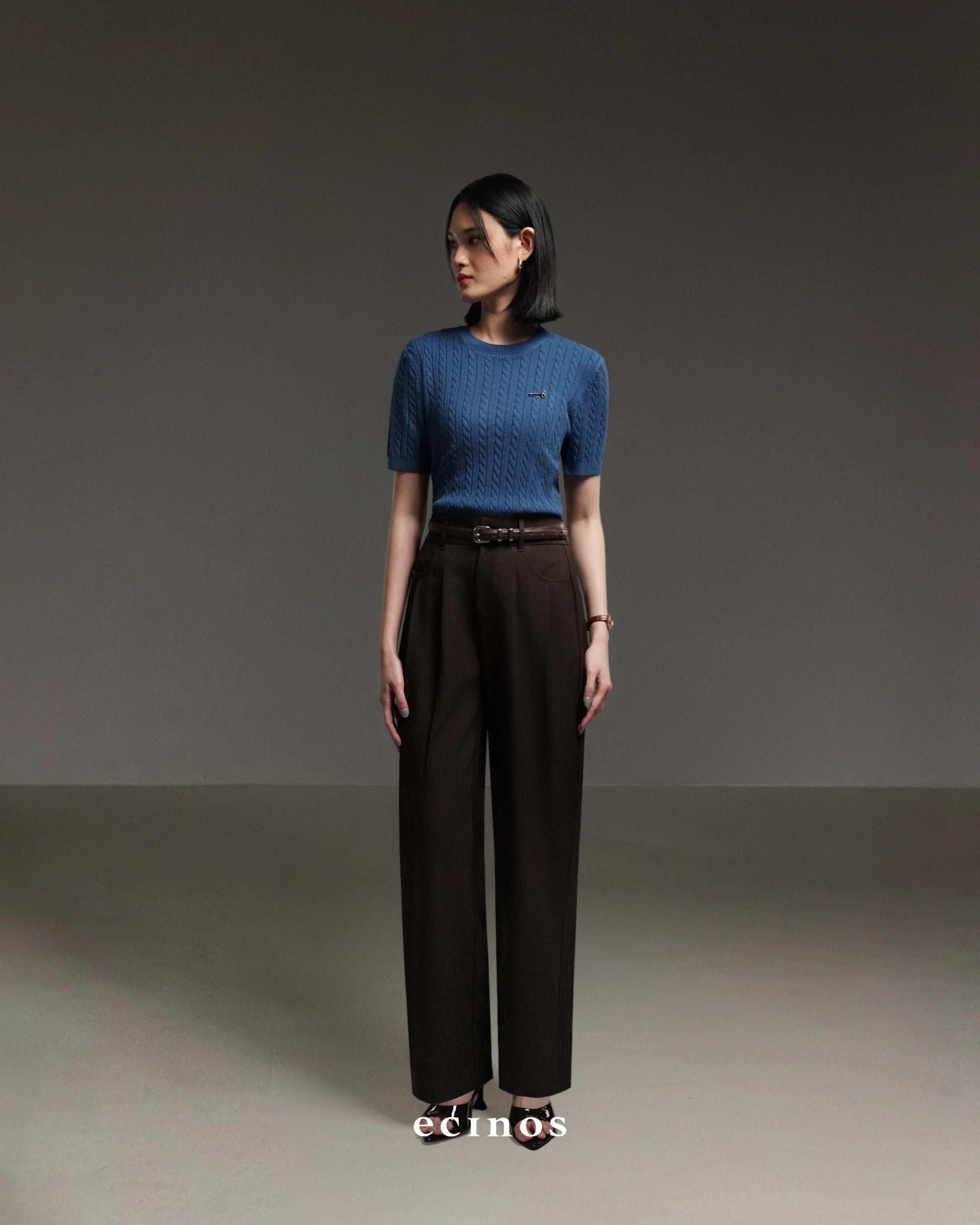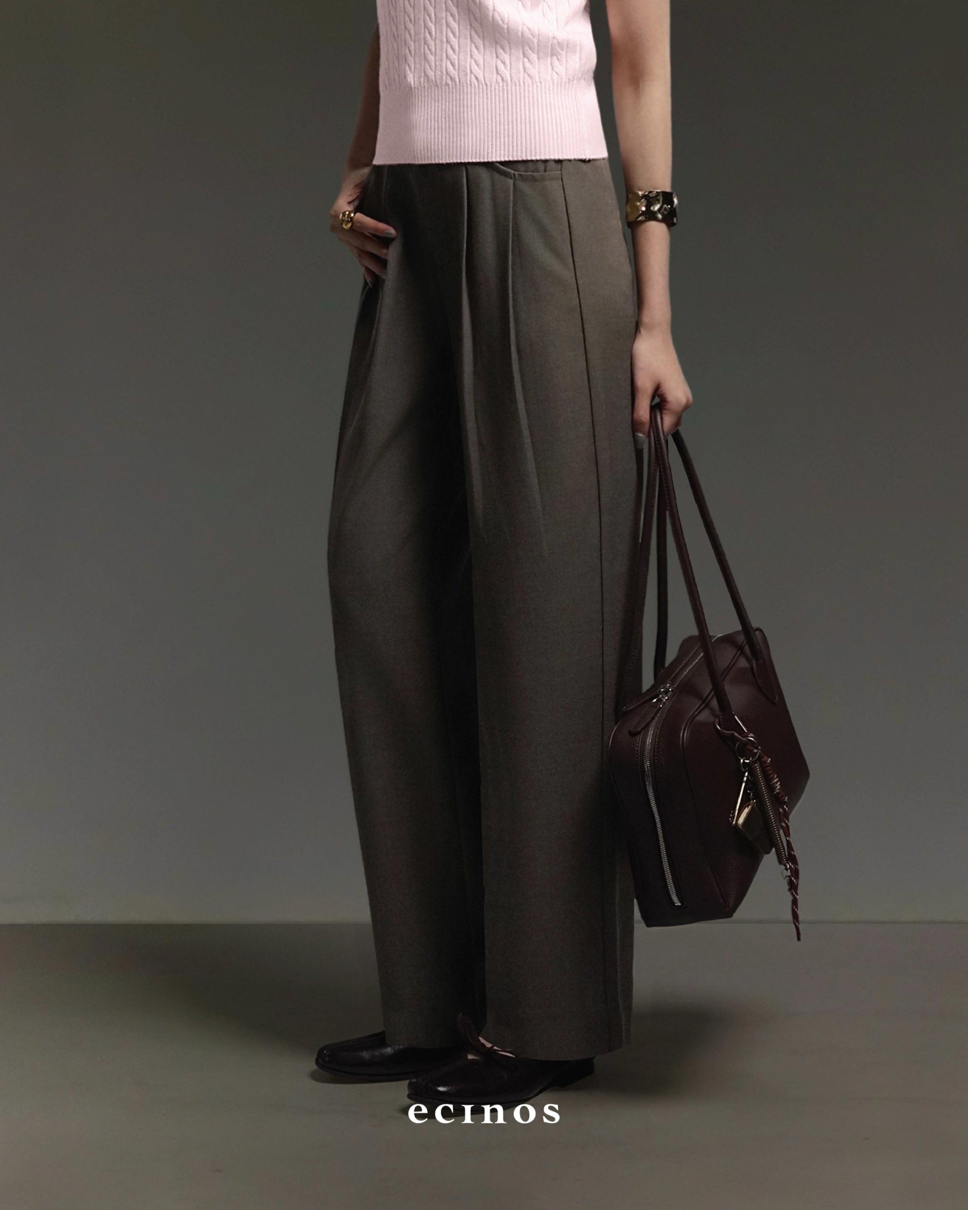 • Highwaisted straight-cut pants with front pleats detail