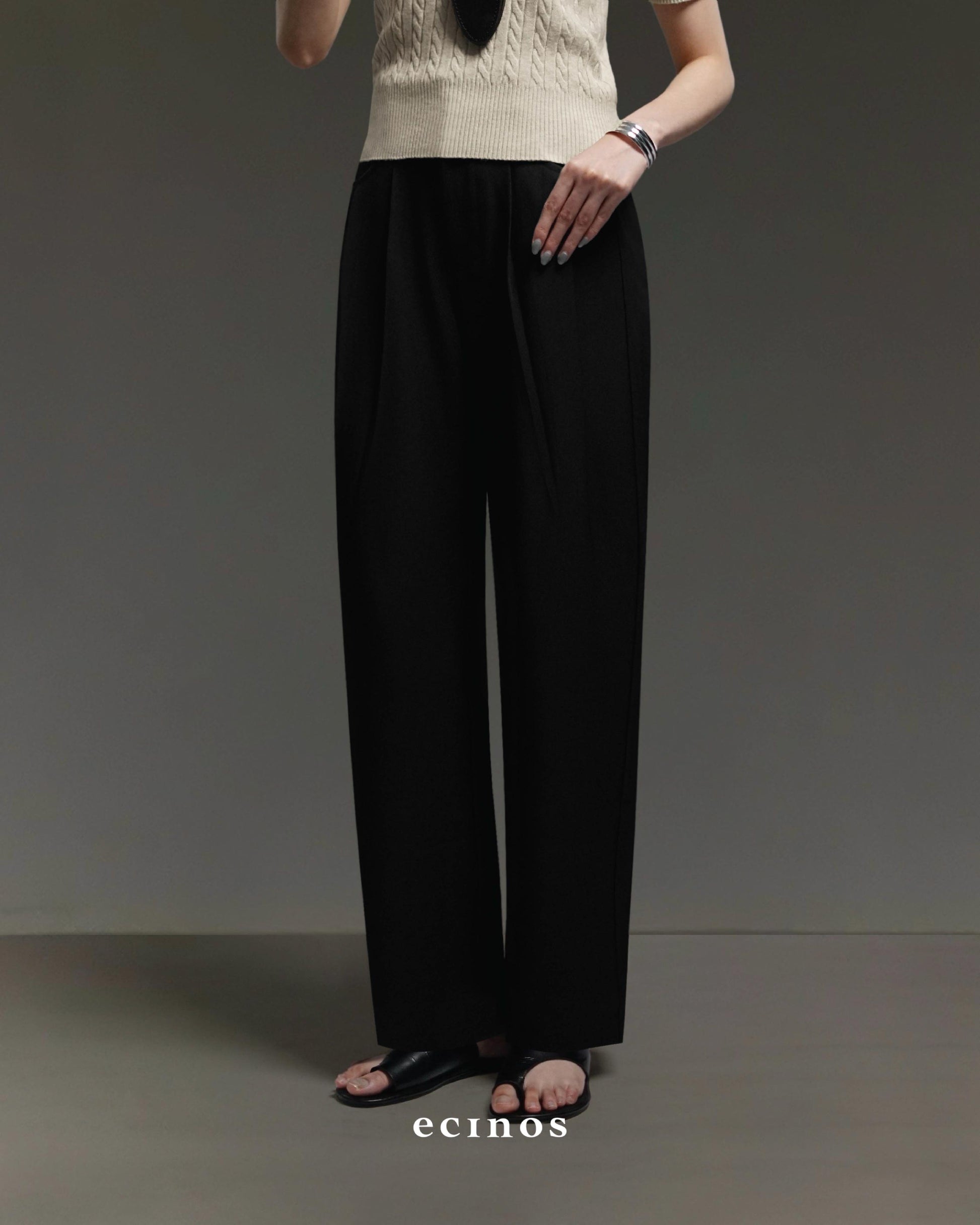 • Highwaisted straight-cut pants with front pleats detail